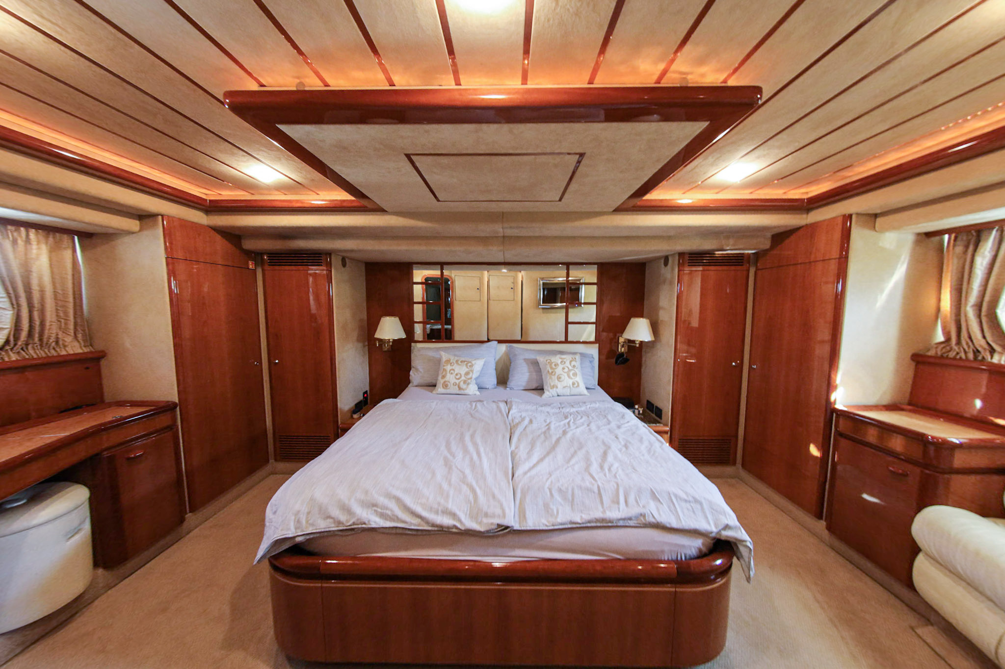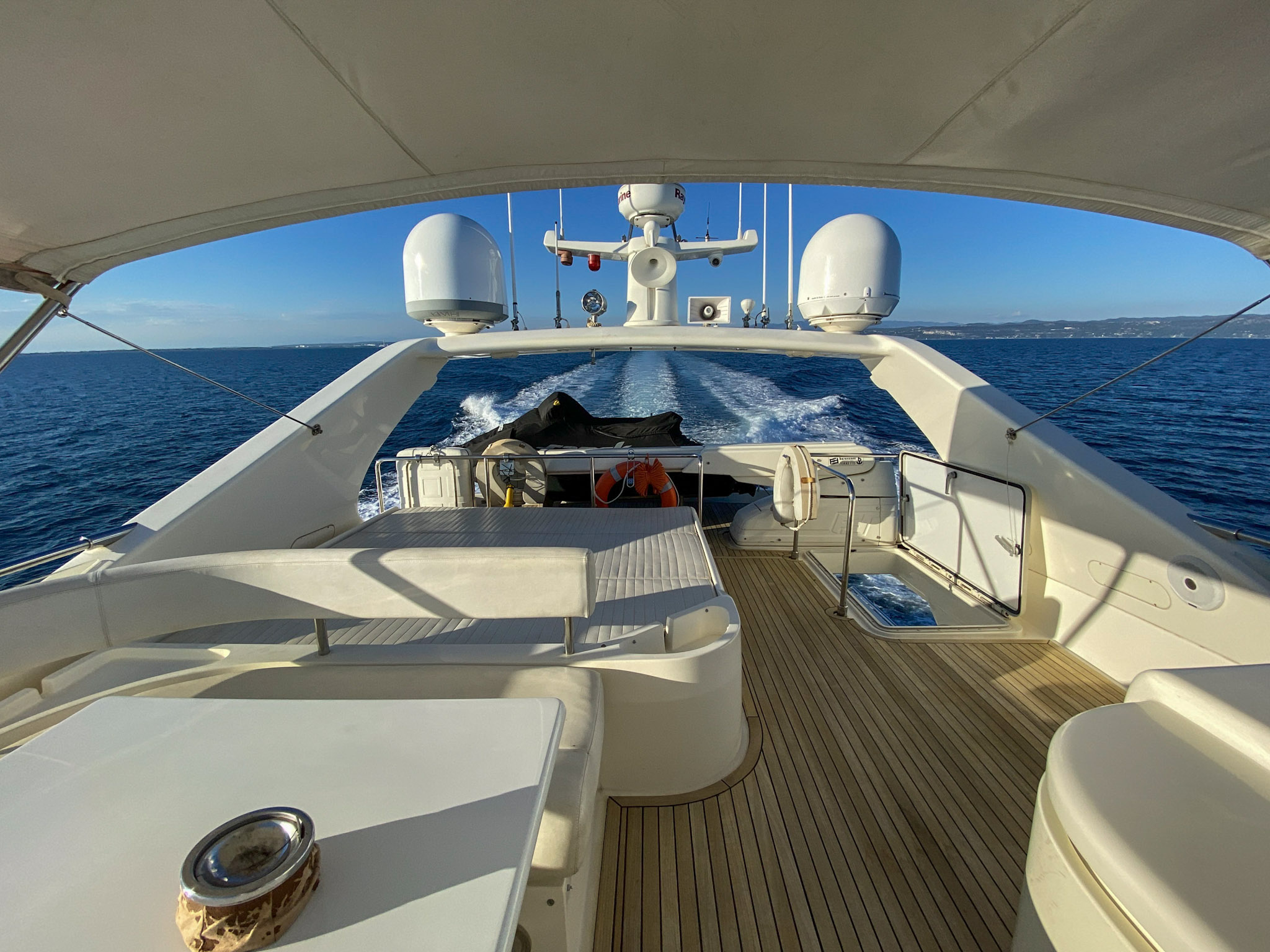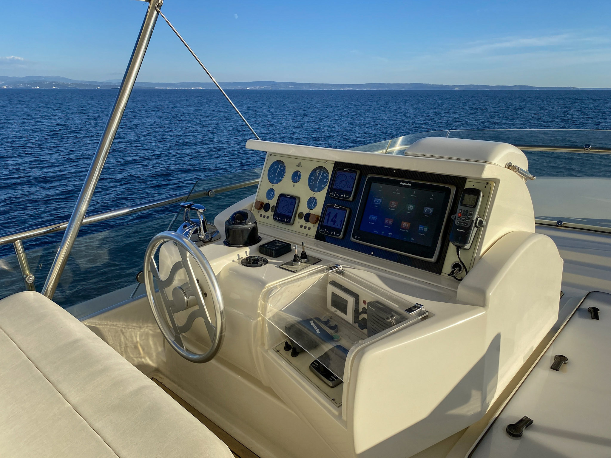 E’ stata regolarmente tirata a secco, fatto il fondo e i tagliandi al motore, ai generatori e agli impianti. Il teak è stato rifatto nel 2018. Le batterie cambiate tutte nel 2023. Impianto di condizionamento nuovo.