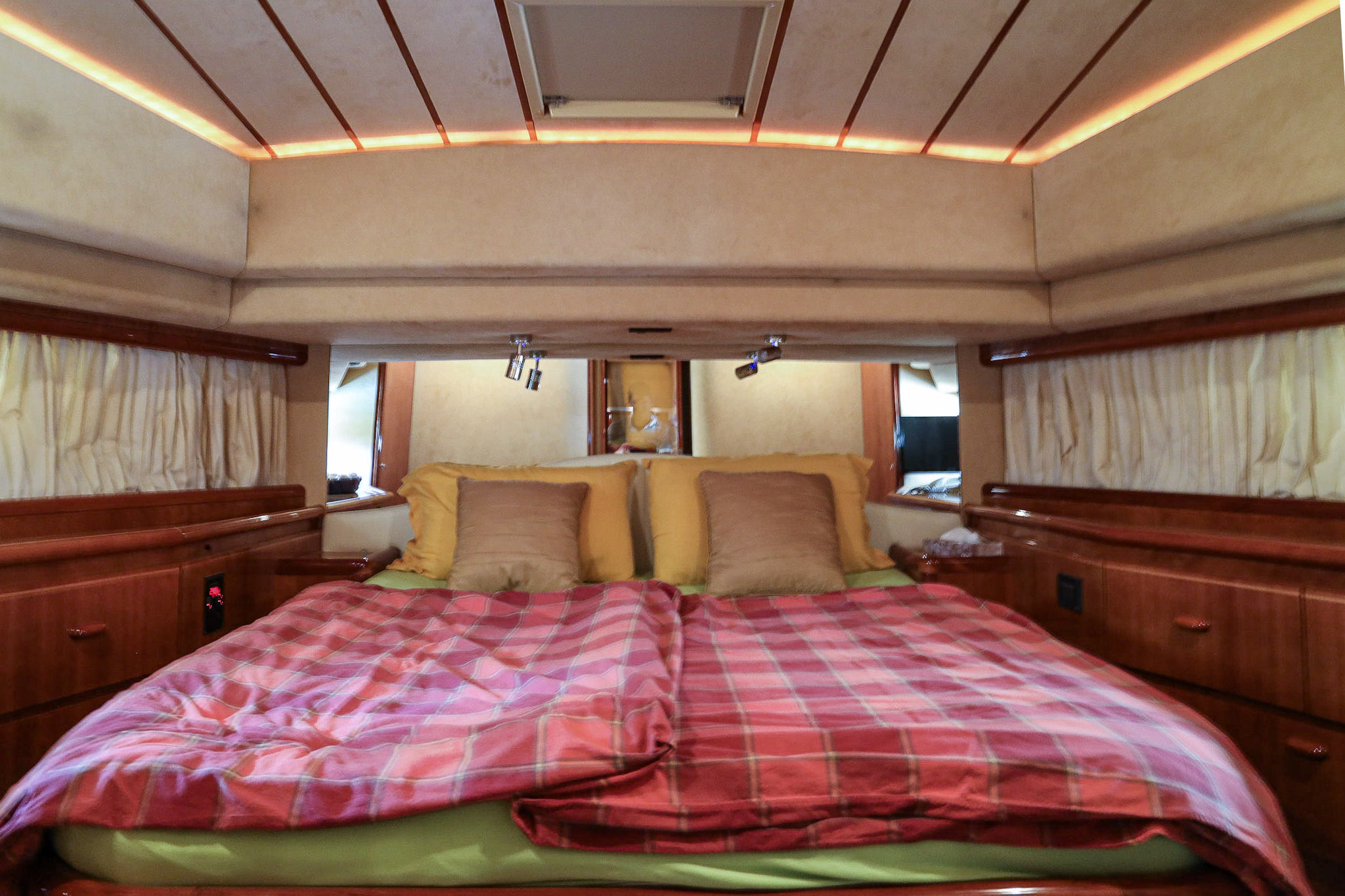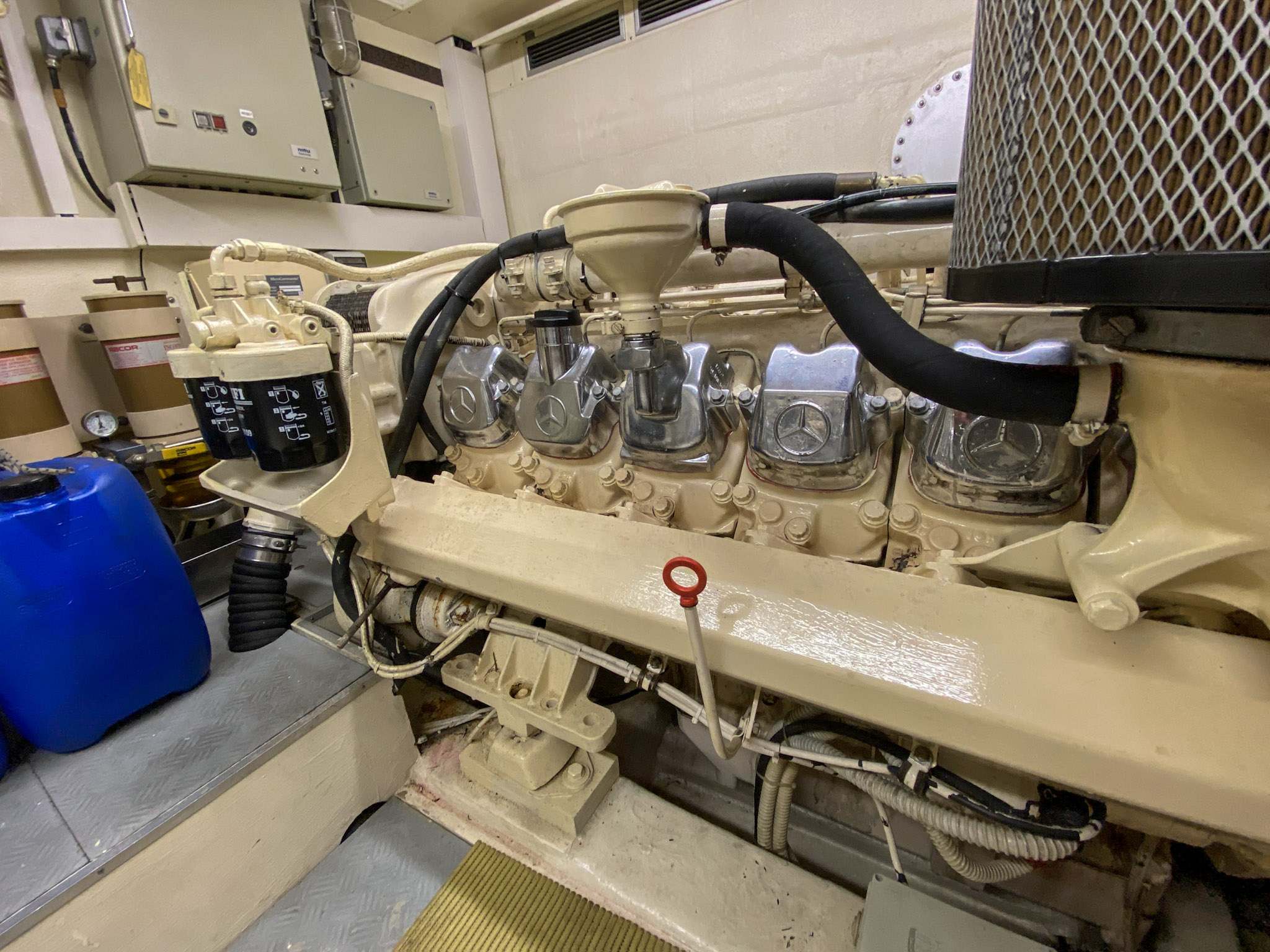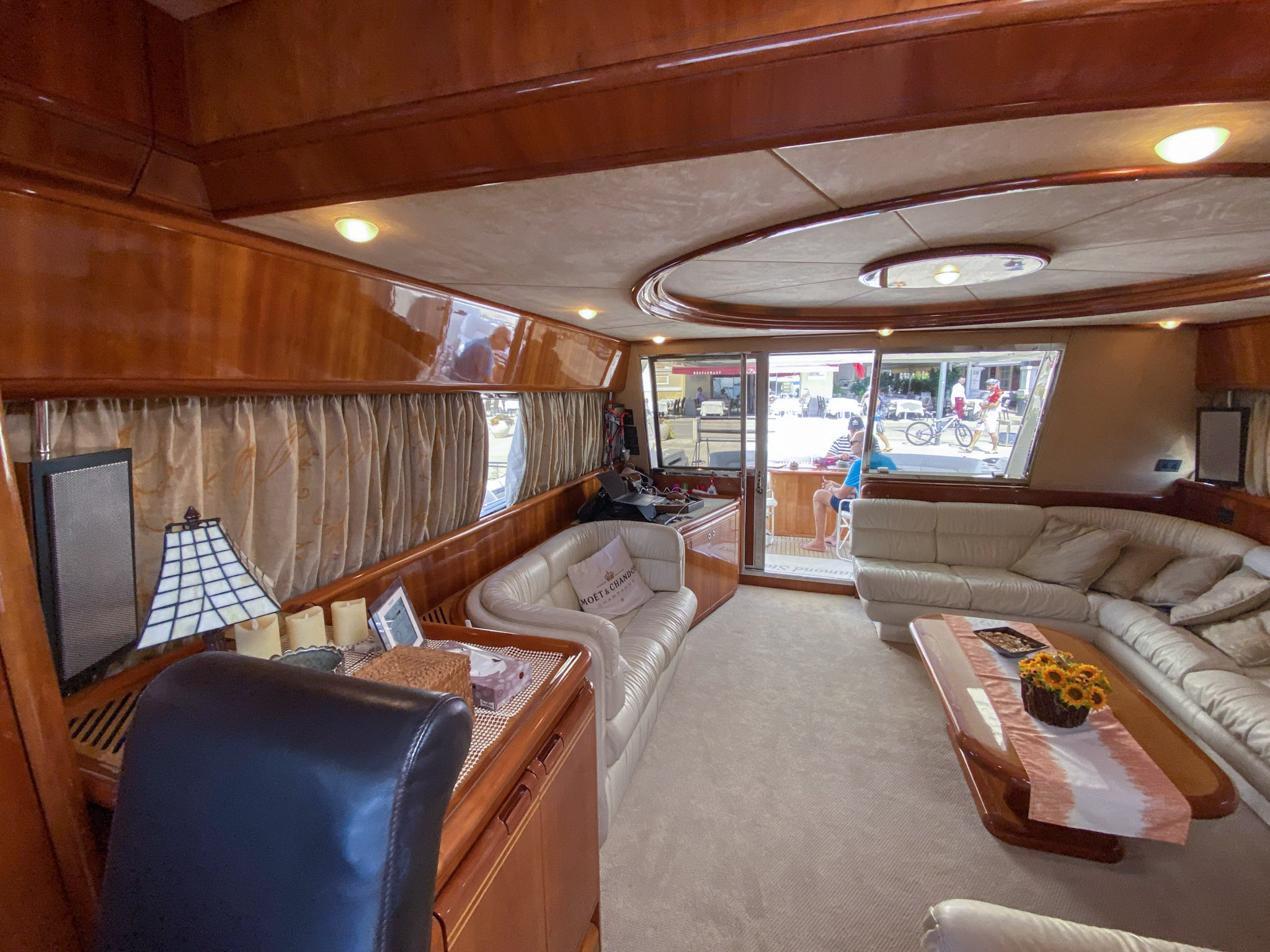 E’ stata regolarmente tirata a secco, fatto il fondo e i tagliandi al motore, ai generatori e agli impianti. Il teak è stato rifatto nel 2018. Le batterie cambiate tutte nel 2023. Impianto di condizionamento nuovo.
