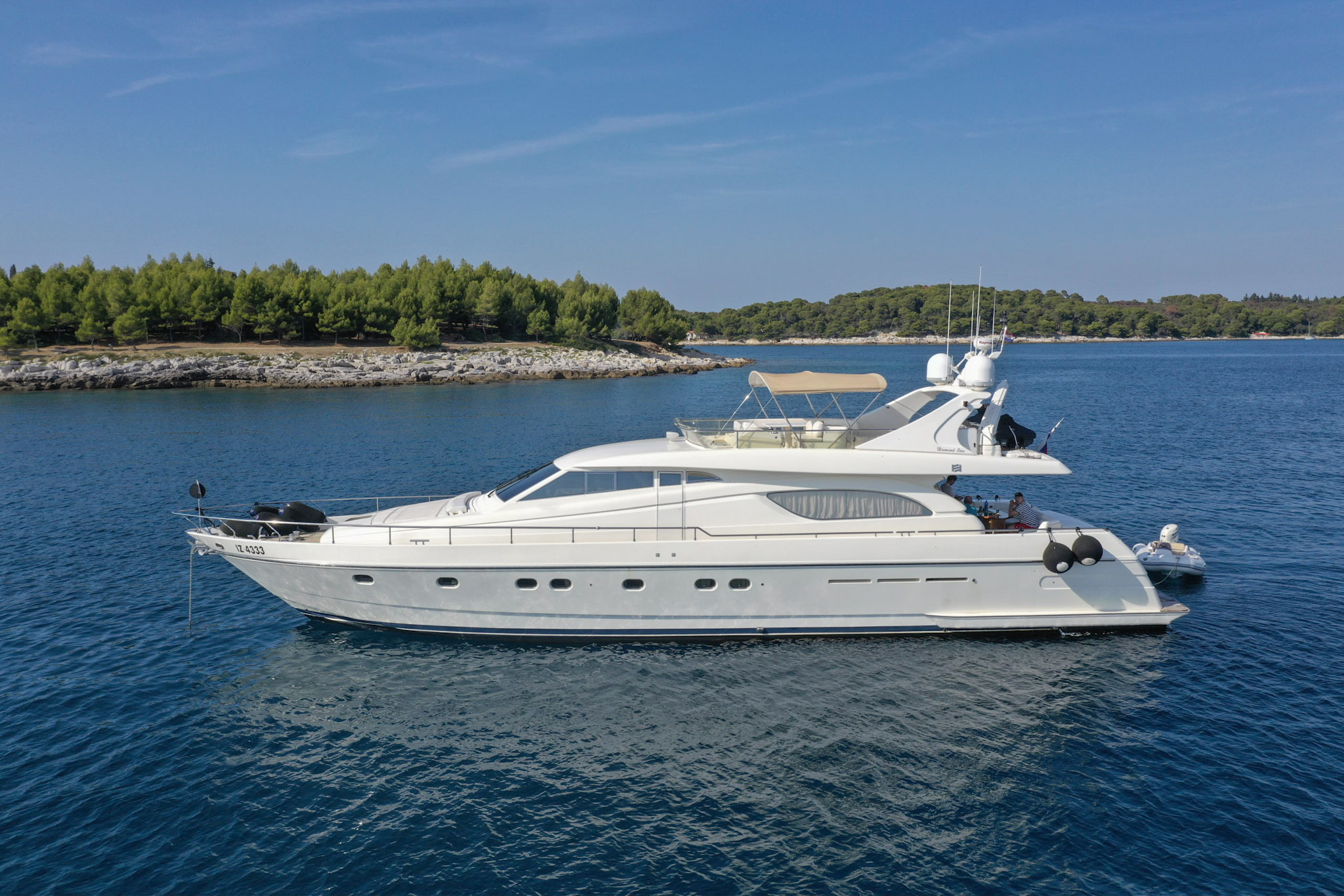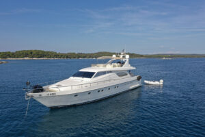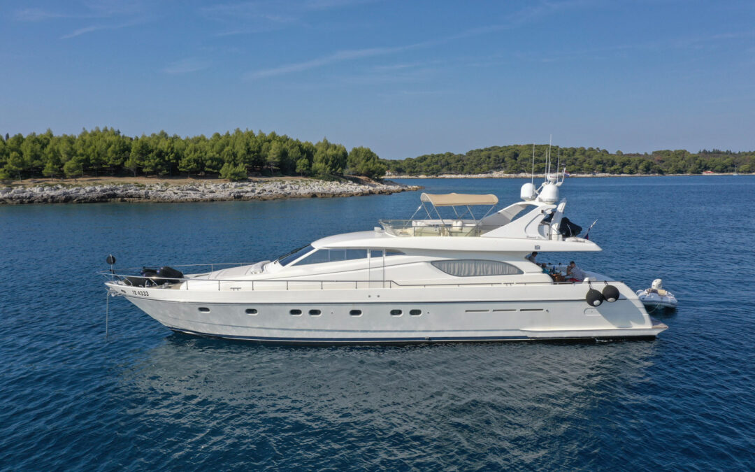 Il Ferretti 72 è uno yacht a motore di lusso di 21,70 metri costruito da Ferretti Yachts nel 1999, ma ancora decisamente elegante, utilizzato e curato sempre da equipaggio professionale.