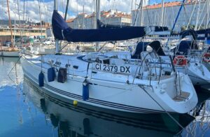 Nel 2024 sono stati effettuati anche diversi interventi straordinari: tolto l'albero per il controllo di tutto il profilo in carbonio, gli attacchi, il sartiame in tondino analizzato e certificato con l'utilizzo degli ultrasuoni. Lo scafo, bianco con le caratteristiche 3 strisce blu scuro, ha ricevuto un trattamento completo del fondo. E' stato sostituito il teak ormai rovinato del pozzetto e delle sedute, con il più pratico teak sintetico, che continua a conferire un aspetto elegante.